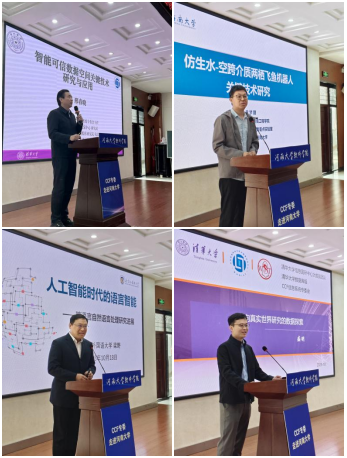 专家报告环节,邢春晓研究员以“智能可信数据空间关键技术研究与应用”为题,深入浅出的解析了新一代智能数据库的关键技术;黄梦醒教授通过“仿生水-空跨介质两栖飞鱼机器人关键技术研究”的报告展示了人工智能技术在交叉学科的创新应用;梁野副教授以“人工智能时代的语言智能:自然语言处理研究导览”为启发,引导在场师生深入学习语言理解与生成的关键技术;盛明老师结合自身经历,围绕“面向真实世界研究的数据探索”的题目介绍了最新的大模型技术。